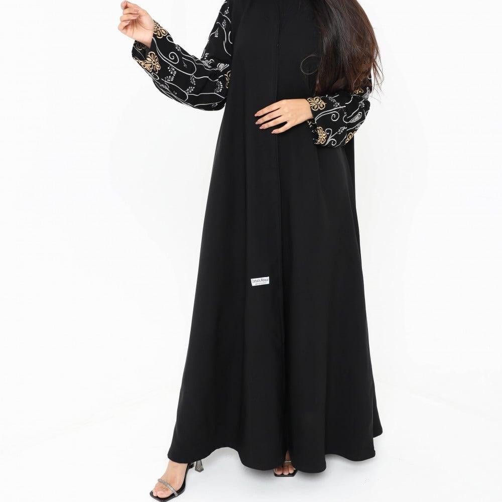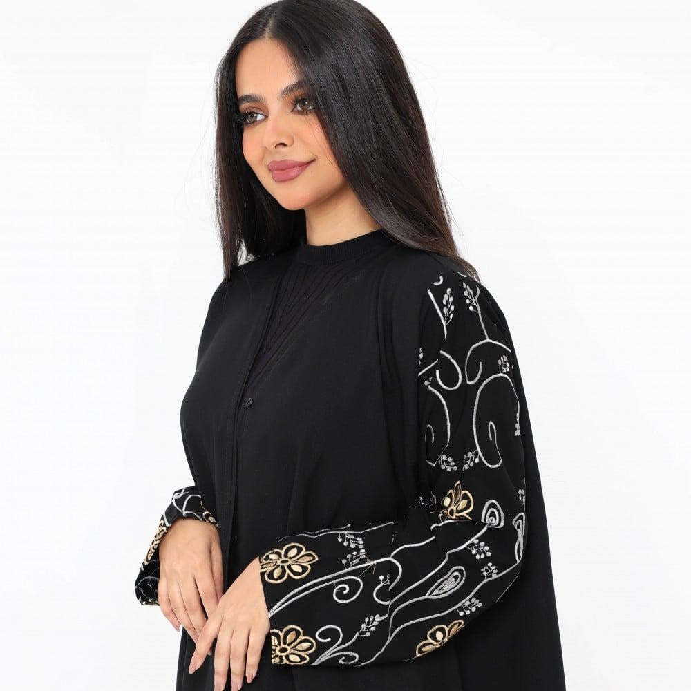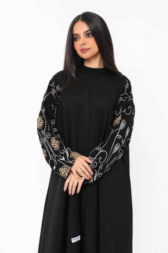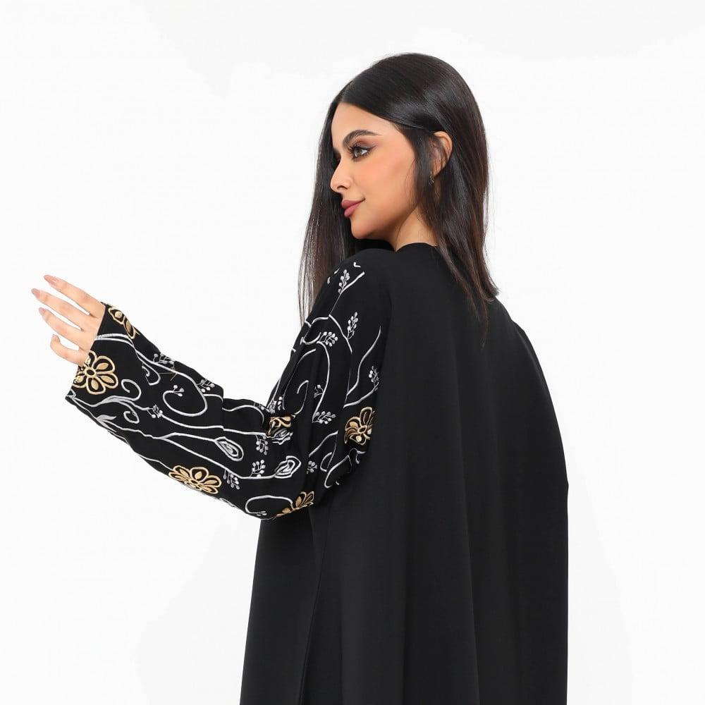 • الموديل: عباية سوداء بتطريز سدو أبيض وذهبي على الأكمام