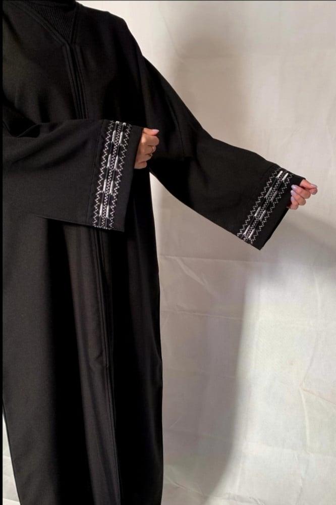 - كسرات فنية على الأكمام والعباية تضيف لمسة أنثوية راقية.